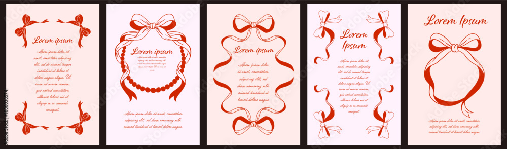 Obraz na płótnie Canvas - Elegant Vintage Coquette Frames with Red Ribbons and Bows, Romantic Stationery Templates for Invitations, Wedding Cards, and Poetry, Hand-Drawn Red Ink Illustration Set..