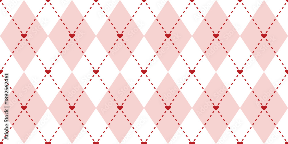 Obraz na płótnie Canvas - Heart argyle pink and red valentines retro plaid print background, seamless repeat pattern.