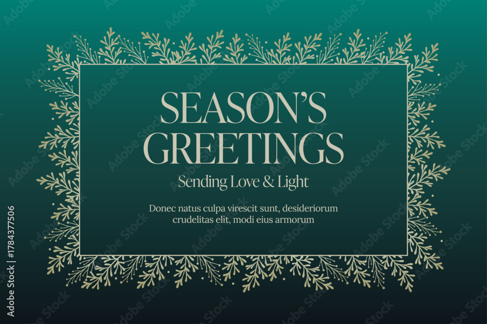 Obraz na płótnie Canvas - Christmas Poster Template in Festive Green & Gold Hues with Elegant Festive Foliage Decorations & Season's Greetings Text.