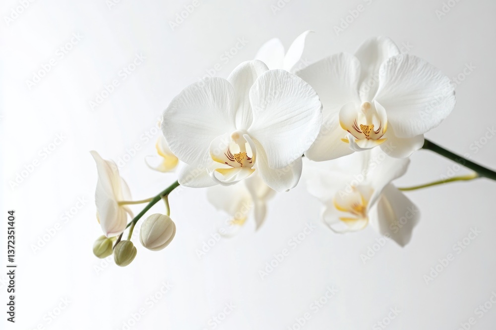 Obraz na płótnie Canvas - A delicate white orchid set against a pristine white backdrop..