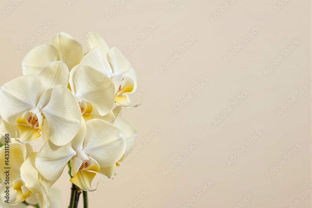 Obraz na płótnie Canvas - close-up of pale yellow orchids on beige background.