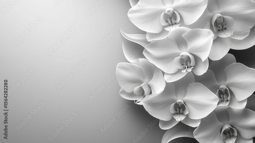 Obraz na płótnie Canvas - Elegant white orchids arranged on the right side against a smooth gray gradient background..