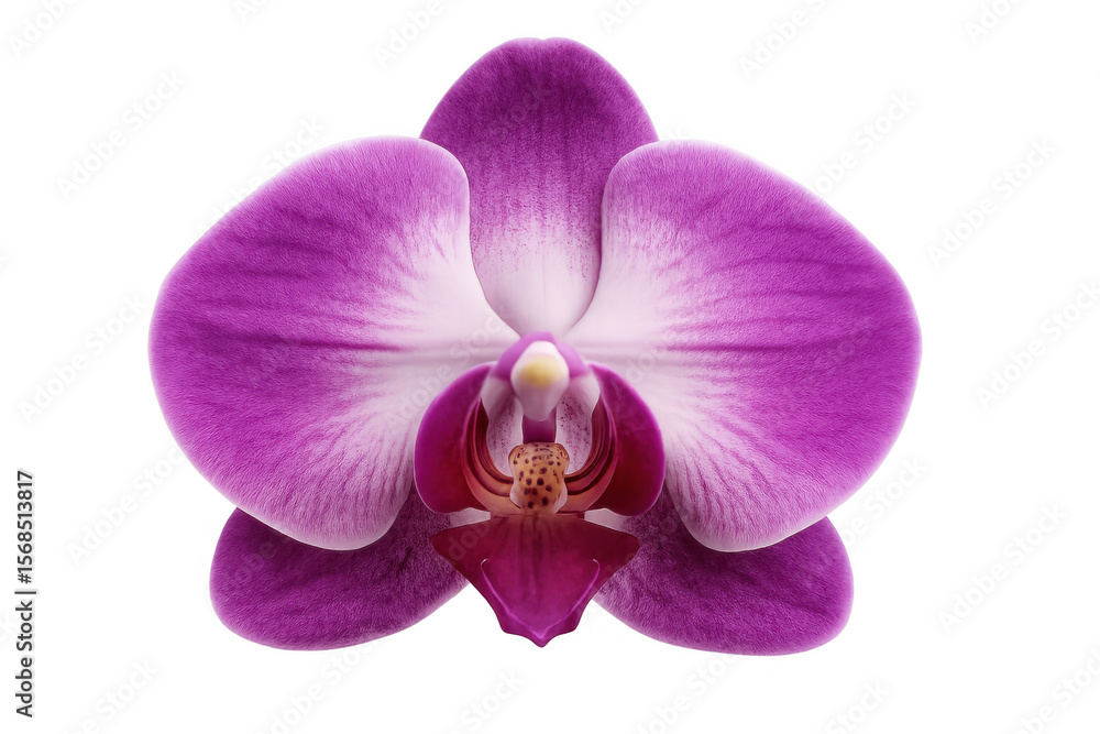 Obraz na płótnie Canvas - Close-up of a vibrant purple orchid blossom showcasing intricate details, set against a transparent background.
