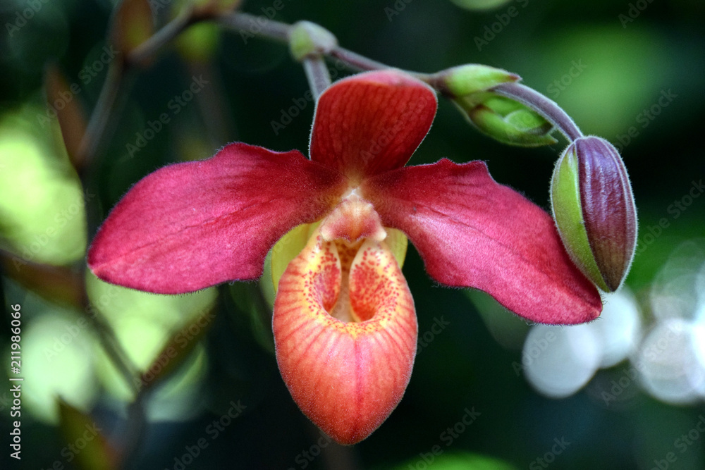 Obraz na płótnie Canvas - lady's slipper orchid flower close-up, orchid species, Cypripedium.
