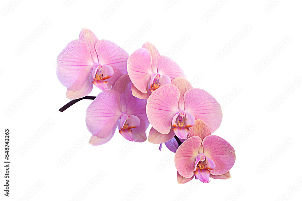 Obraz na płótnie Canvas - Branch of beautiful pink Phalaenopsis orchid isolated on white.