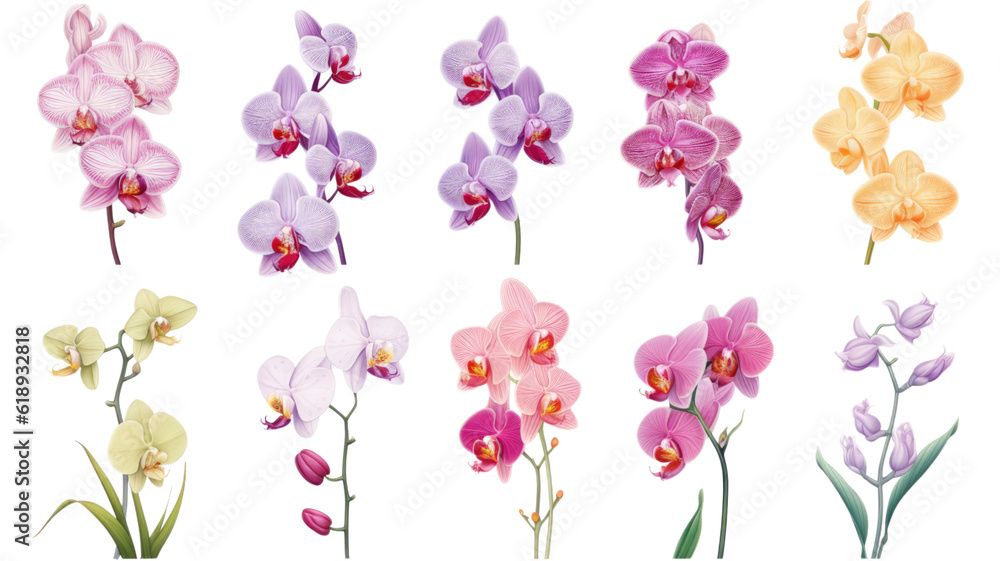 Obraz na płótnie Canvas - a collection of orchids flowers isolated on a transparent background, generative ai.