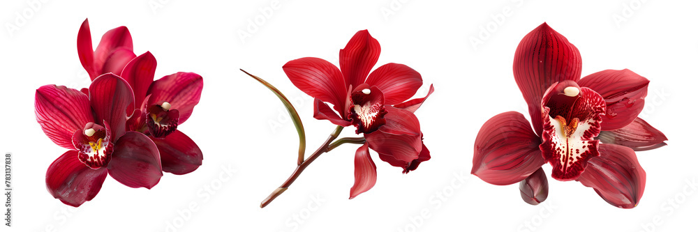 Obraz na płótnie Canvas - set of red orchid flower isolated on white or transparent background.