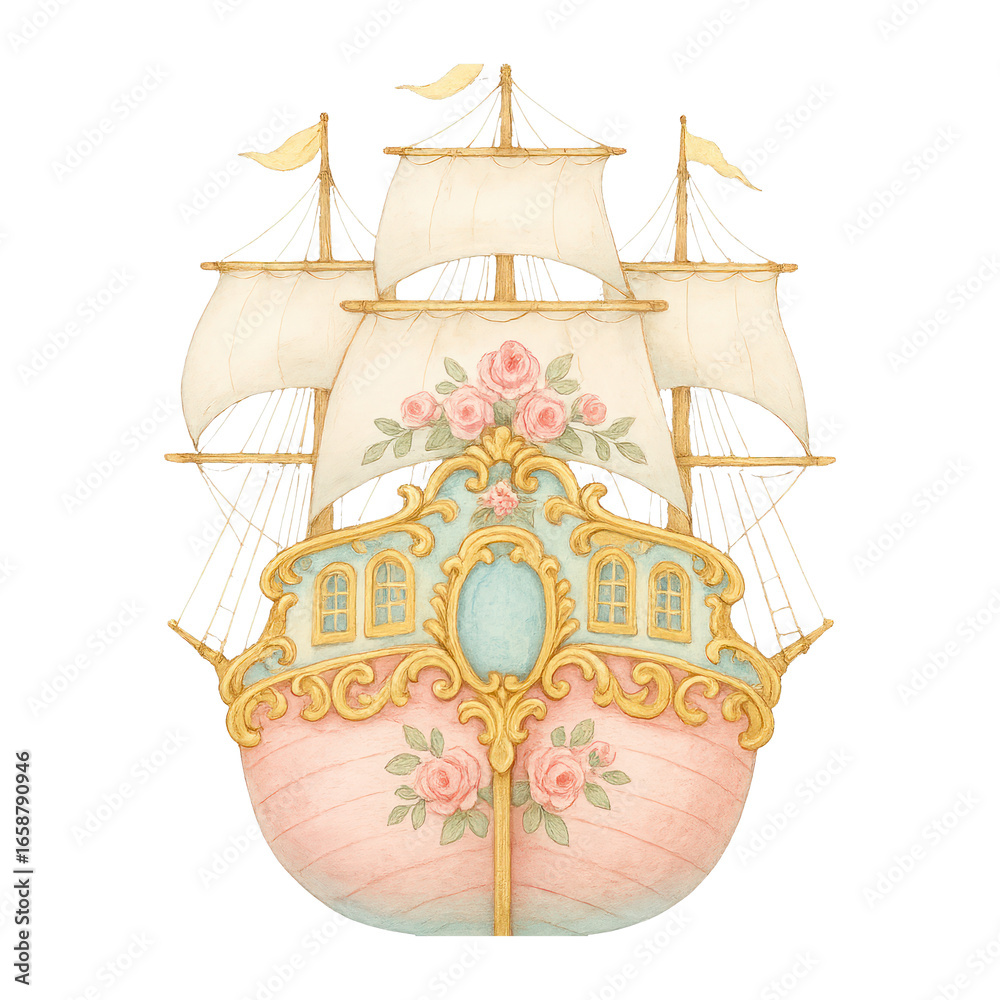 Obraz na płótnie Canvas - PNG Vintage floral ship illustration.