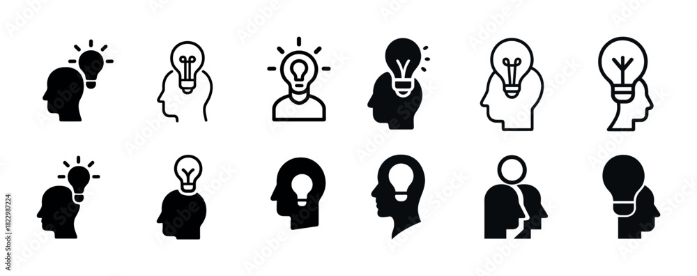 Obraz na płótnie Canvas - Human head and light bulb icons illustrating creative ideas and innovation concepts.