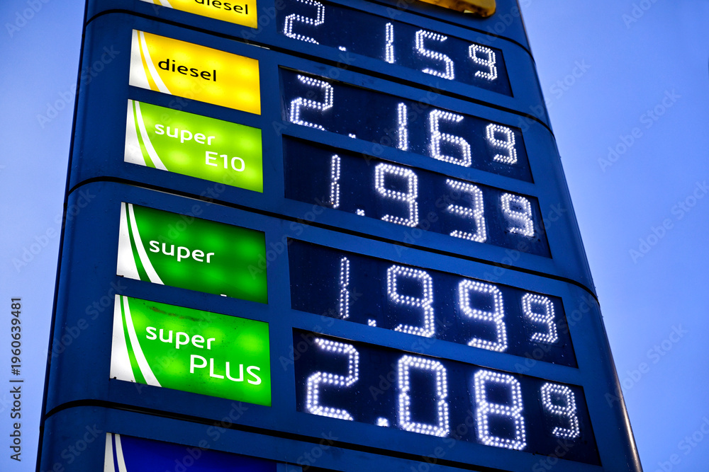 Obraz na płótnie Canvas - Spritpreis,Tankstelle,Energiekrise,Anzeigetafel.
