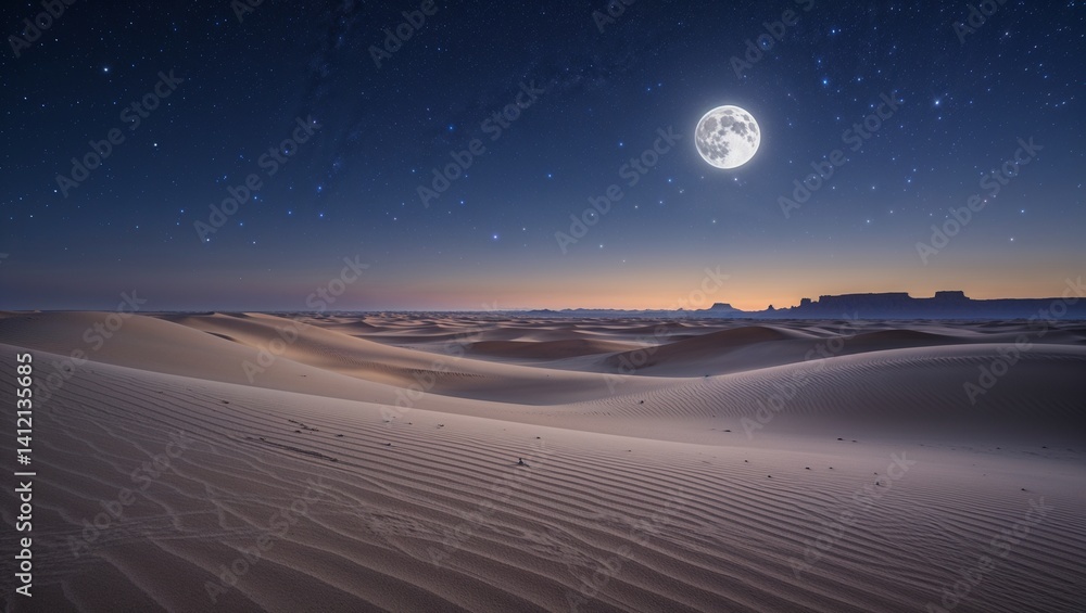 Obraz na płótnie Canvas - 月明かりに照らされた星降る砂漠の夜.