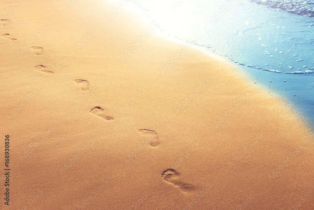 Obraz na płótnie Canvas - Fußspuren im Sand am Strand.