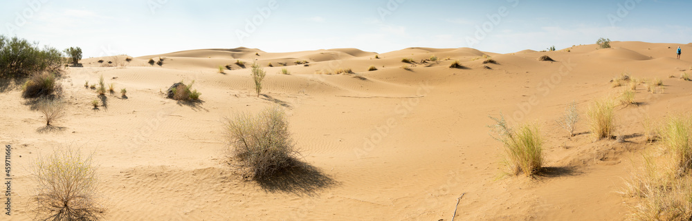Obraz na płótnie Canvas - A beautiful panoramic view of the sand dunes. Endless arid desert.