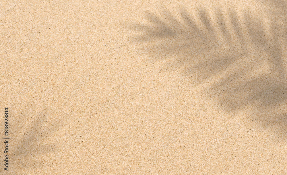 >Obrazy na płótnie Canvas>Wybrane motywy - zobacz więcej !>Piasek>Sand texture background with palm leaves silhouette,Coconut leaf Shadow on Brown Sandy Beach,Top view Sand Surface,Backdrop background Wide Horizon Desert dune for Summer Product Presentation