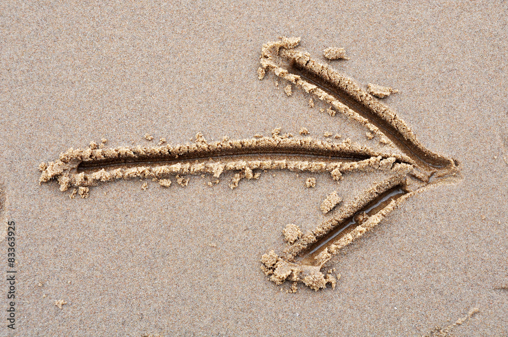 Obraz na płótnie Canvas - Drawn arrow on the sand.