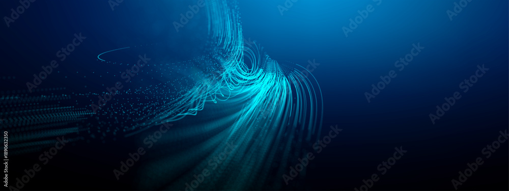 Obraz na płótnie Canvas - Big data flow with bg background code and ai abstract line. Wave pattern technology with digital purple circuit and triangle network tech. Circle dot artificial with source water binari and eye..