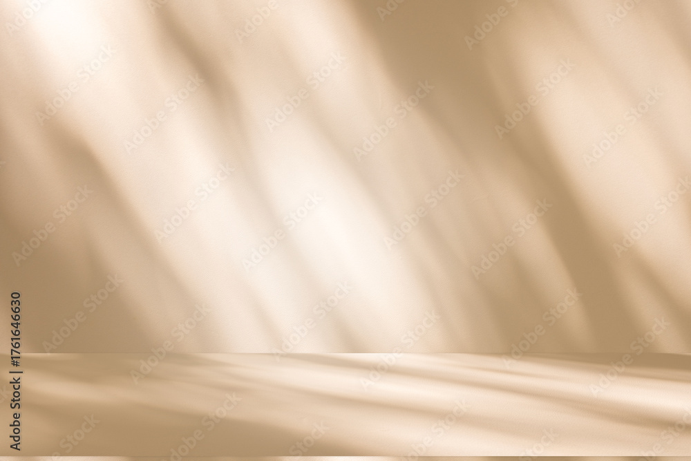 Obraz na płótnie Canvas - Wall interior autumn background, studio, and backdrops show products. with shadow leaf color beige background for text insertion and presentation of product .