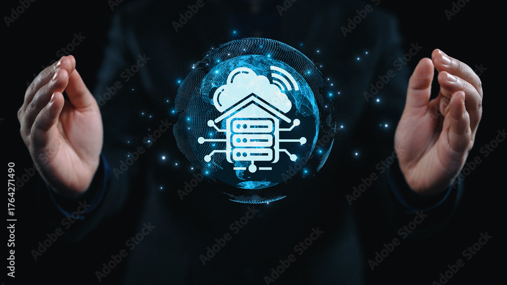 Obraz na płótnie Canvas - Cloud computing, cloud strategy, and cloud technology transforming digital infrastructure with scalable services, secure data storage, and cloud-based digital business solutions. Elide.