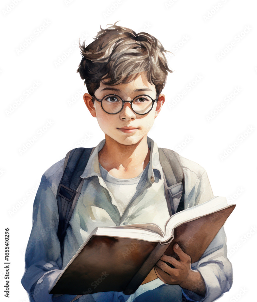 Obraz na płótnie Canvas - PNG Asian student boy publication portrait reading..