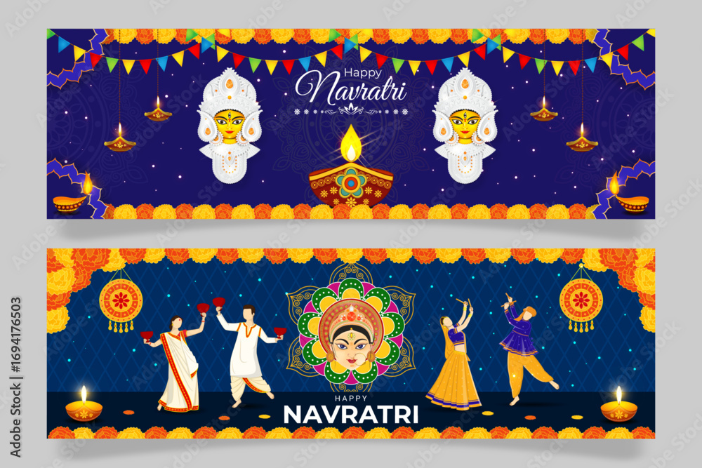 Obraz na płótnie Canvas - Vector illustration of Happy Navratri social media template.