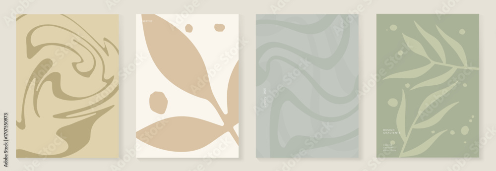Obraz na płótnie Canvas - Abstract botanical poster vector set. Leaves, flower in earth tone colors. Illustration design for Eco packaging, interior, cover, wall art, wallpaper. .
