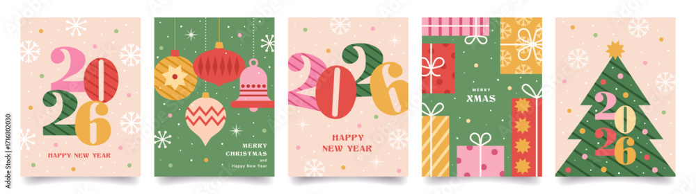 >Obrazy na płótnie Canvas>Wybrane motywy - zobacz więcej !>Polska>Merry Christmas and Happy New Year posters or greeting cards. Trendy modern backgrounds with Christmas tree, gifts, snowflakes, holiday decor in minimal style. Vector template for banner, print,web.