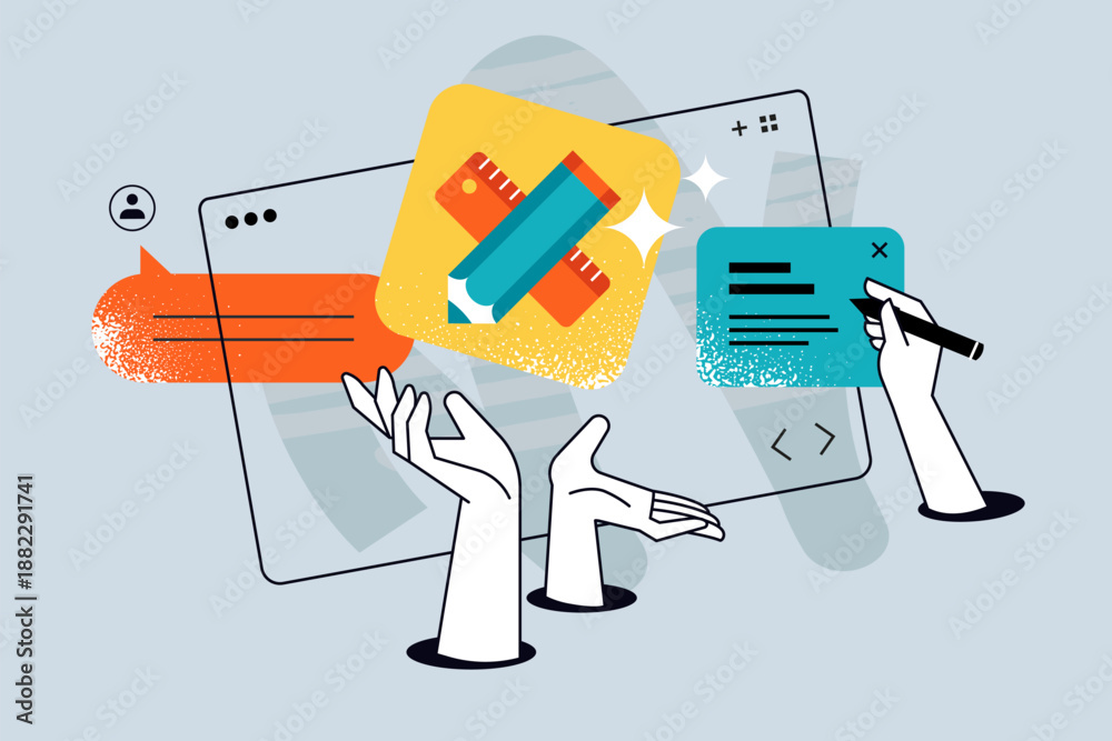Obraz na płótnie Canvas - Creative banner of web design and development. Vector illustrations for web banner, social media banner, business presentation, marketing material. .