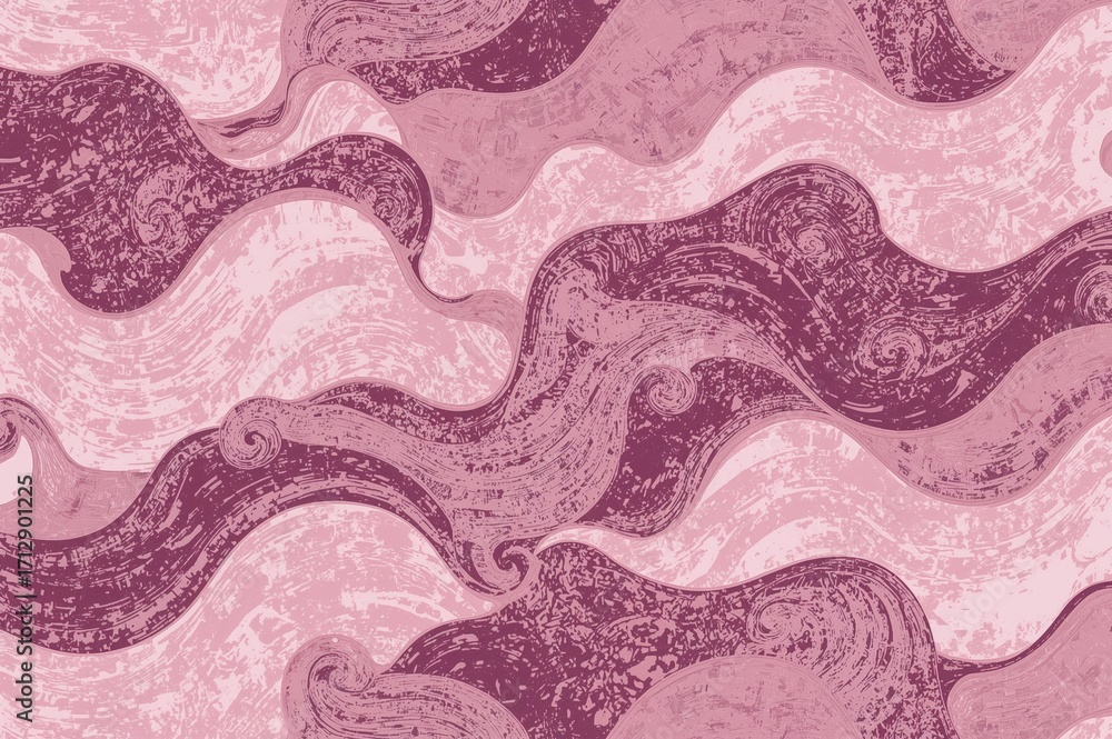 Obraz na płótnie Canvas - Seamless abstract wave pattern featuring hand-drawn curves in shades of pink and purple.