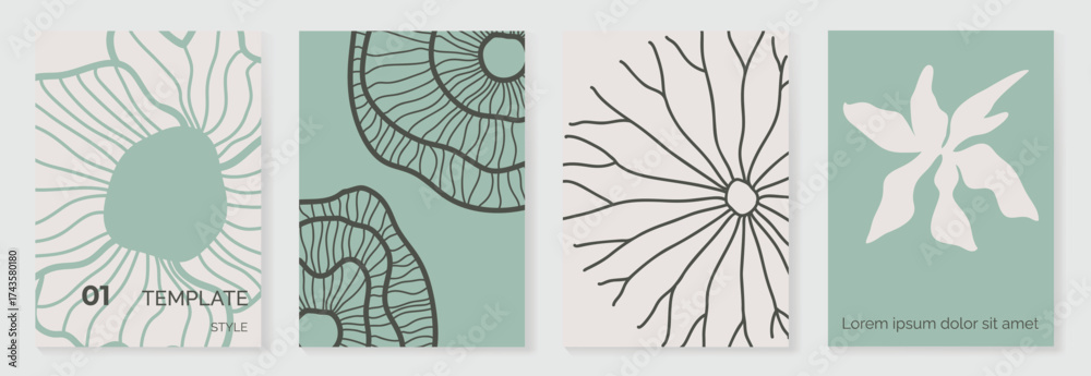 Obraz na płótnie Canvas - Abstract wall art vector set. Natural and organic shape with green blue tone colors. Illustration design for Eco packaging, interior, cover, wall art, wallpaper..