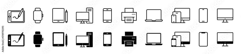 Obraz na płótnie Canvas - Digital devices icon set. Electronic device and technology symbol. Vector illustration..