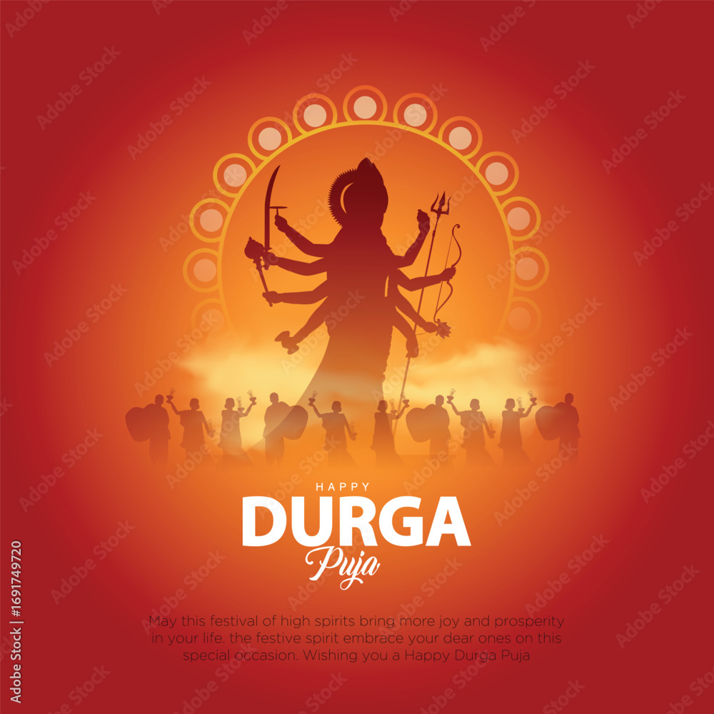 Obraz na płótnie Canvas - indian God durga in Happy Durga Puja Subh Navratri background. vector illustration.