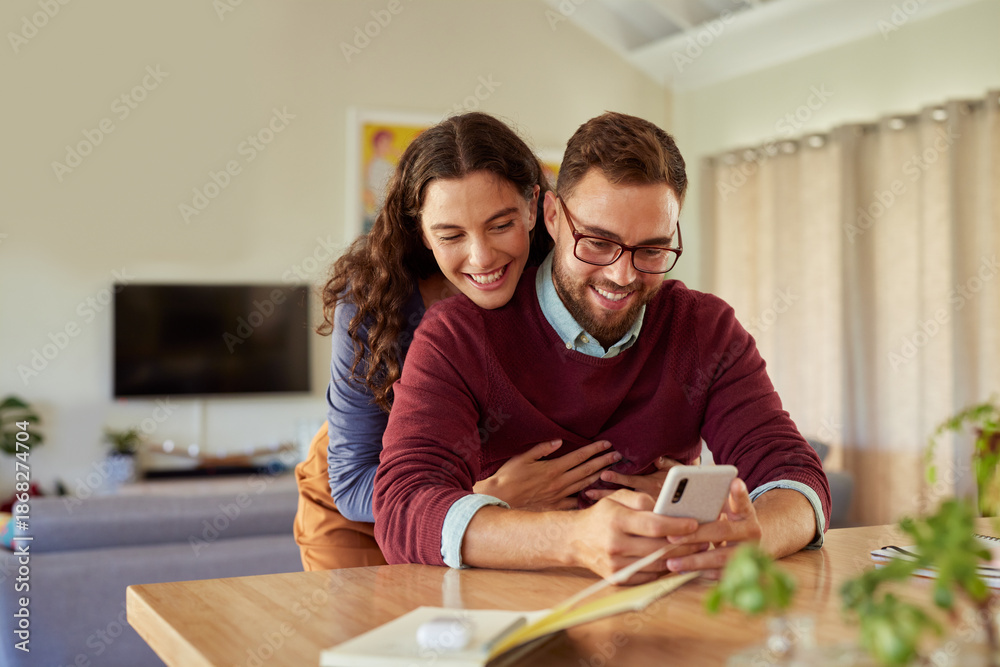 Obraz na płótnie Canvas - Mid adult couple enjoying social media at home.