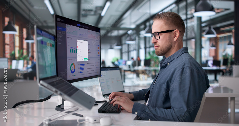 Obraz na płótnie Canvas - Young Professional Managing Cloud-Based Enterprise Software System.