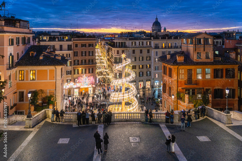 Obraz na płótnie Canvas - The marvelous Piazza di Spagna during Christmas time in Rome, Italy..