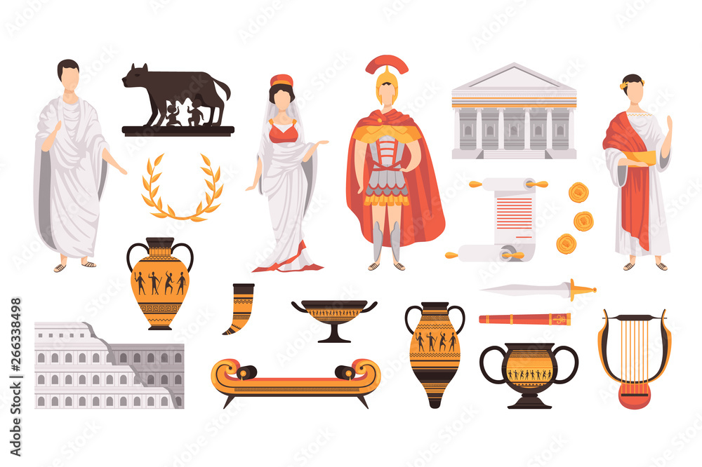 Obraz na płótnie Canvas - Traditional cultural symbols of ancient Rome set vector Illustrations on a white background.