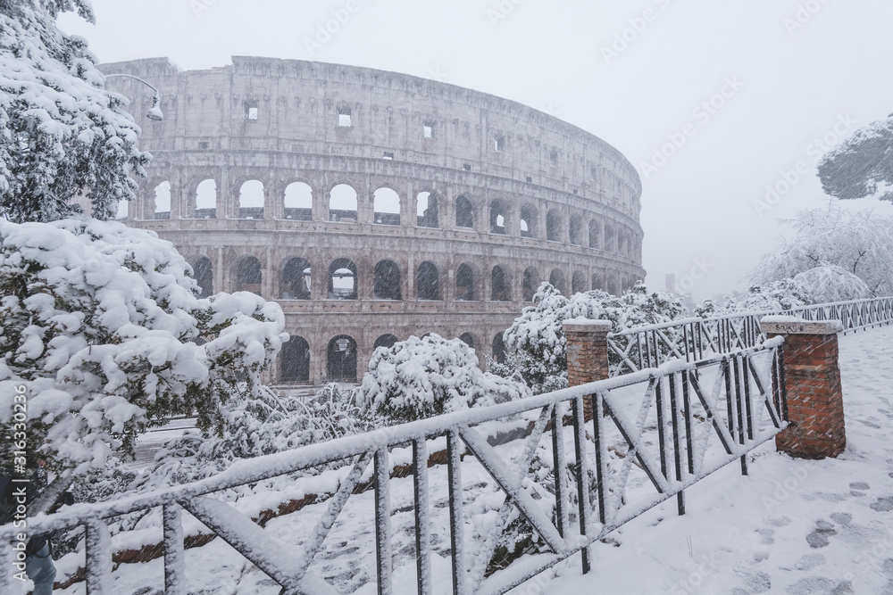 Obraz na płótnie Canvas - Snow storm in Colosseum Rome Italy.