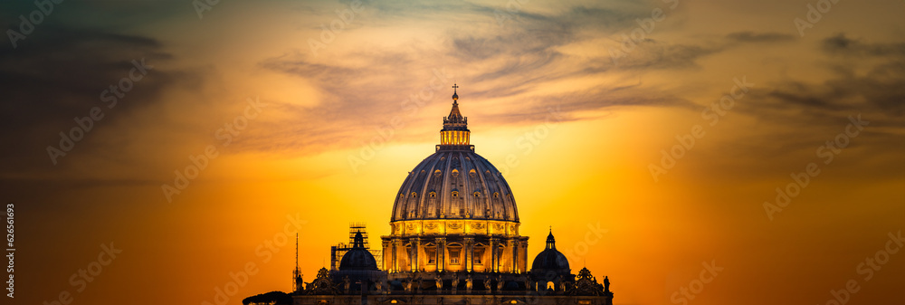 Obraz na płótnie Canvas - Sunset panorama of Dome of St Peter's basilica in Rome.