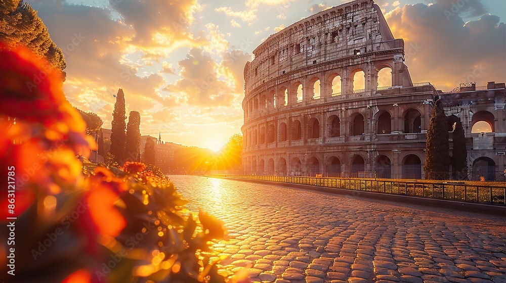 Obraz na płótnie Canvas - Morning Light at the Colosseum, Italy - A beautiful shot of the Colosseum in Rome as the morning sun begins to shine..