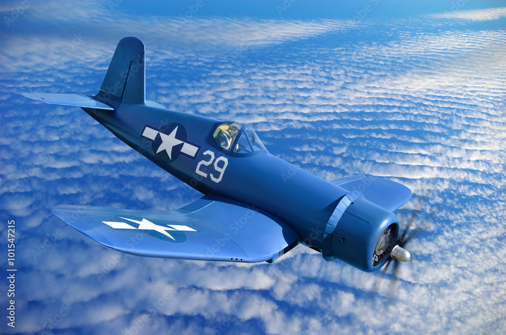 Obraz na płótnie Canvas - Carrier-based fighter is flying against the blue sky.