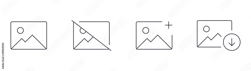 Obraz na płótnie Canvas - thin-line gallery icons - image photo album icon set featuring images placeholders for viewing, deleting, adding, and download photo symbols for web and app interfaces & editable stroke.