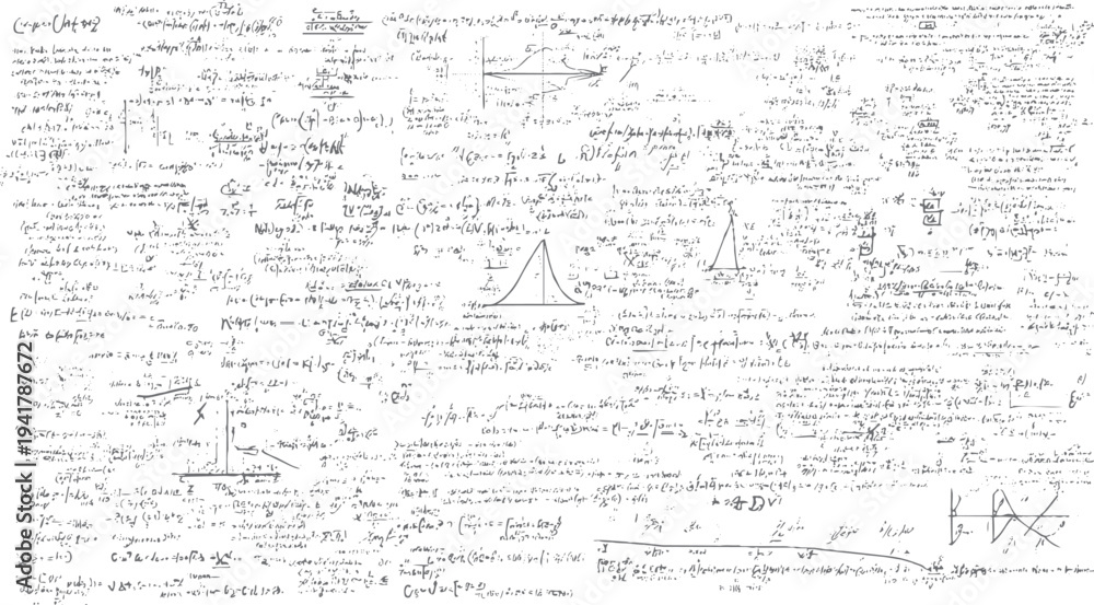 Plakat - Handwritten mathematical equations and graphs on a white background mathematics formulas 1 calculus algebra.