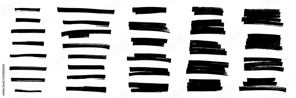 >Plakaty>Wybrane motywy - zobacz więcej !>Słoń>Black highlight marker lines isolated on white background. Various marker pen strokes with different length and thickness hand drawn set. Realistic vector graphic modern design elements.