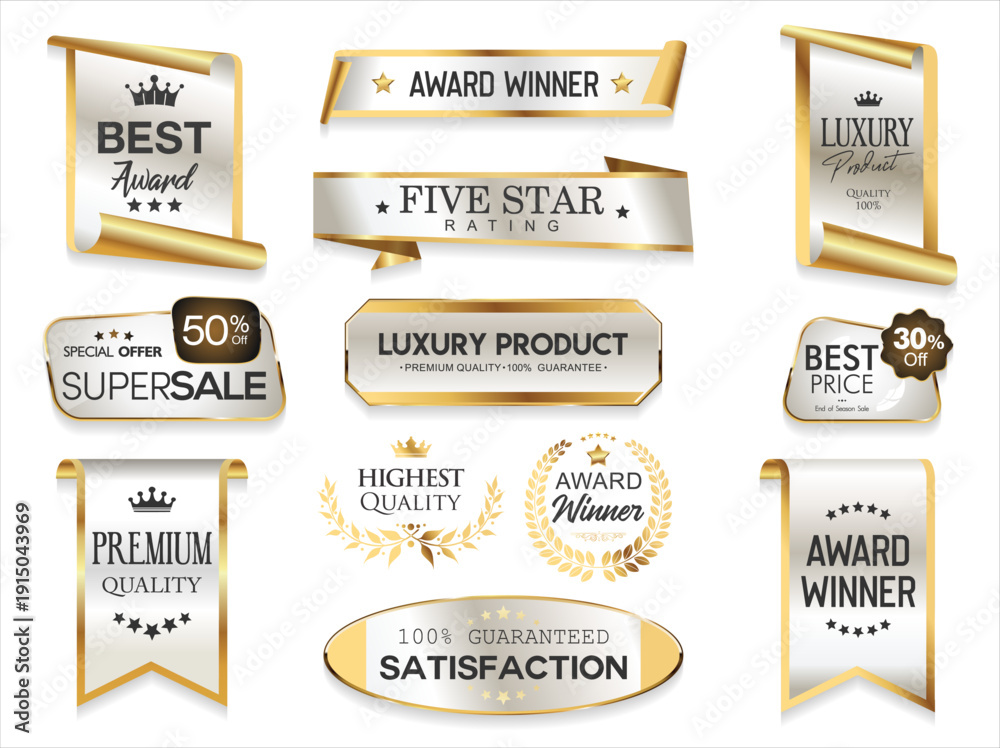 Plakat - Best award, premium quality, luxury and gold award emblem black and gold isolated stock illustration .