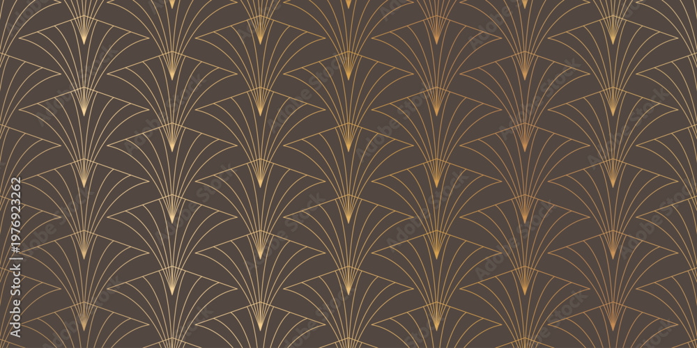 Plakat - Luxury geometric gold line art and art deco background vector. Abstract geometric frame and elegant art nouveau with delicate. Illustration design for invitation, banner, vip, interior, decoration..