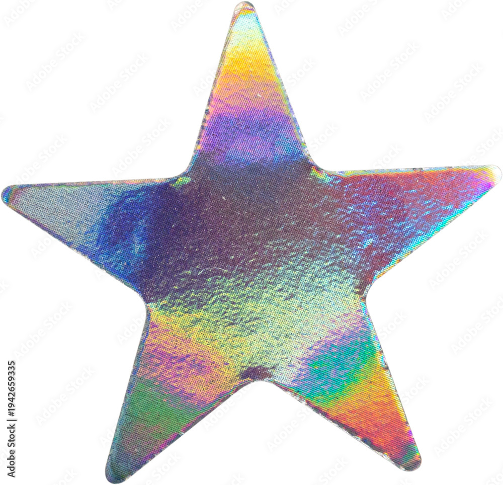 Plakat - Holographic star sticker with iridescent foil texture isolated on white background.