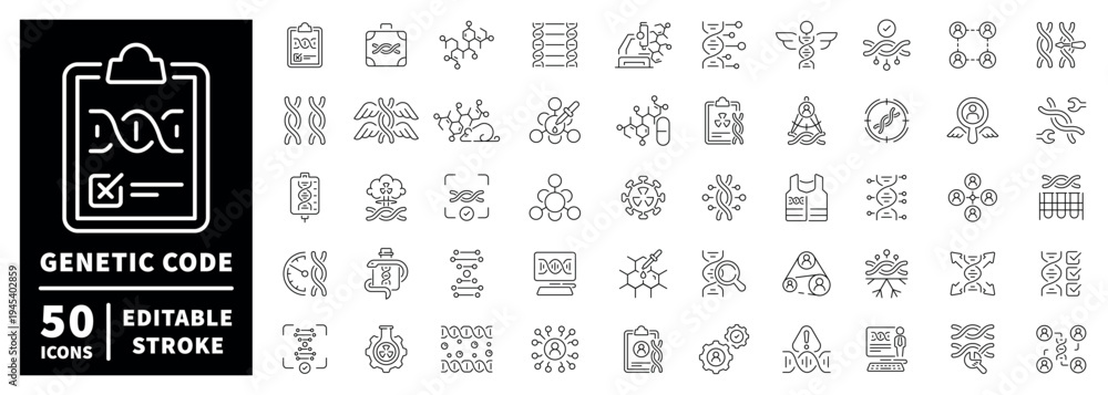 Plakat - Genetic code outline icon set with editable stroke in modern thin line style.