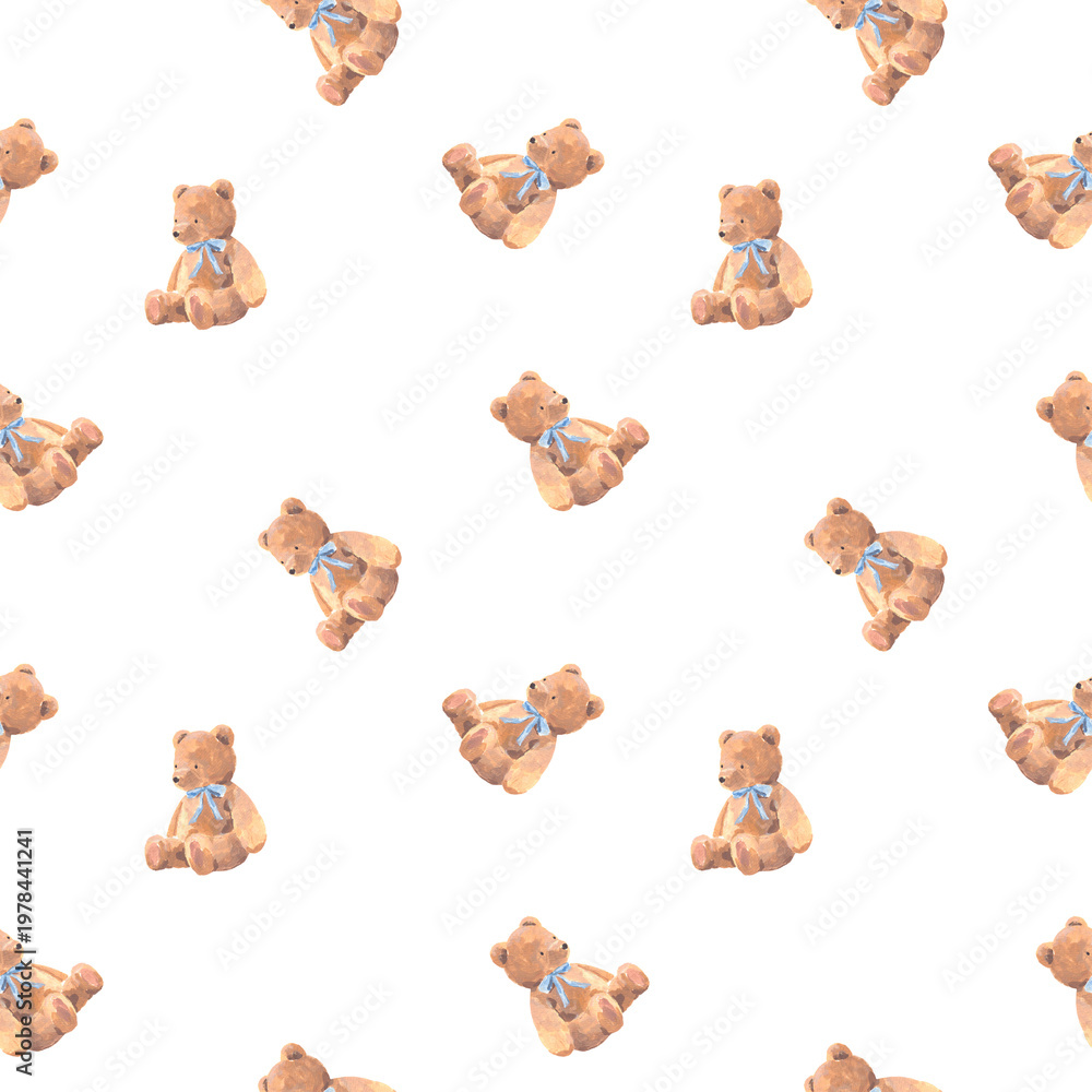 Plakat - Cute Teddy Bear Seamless Pattern Baby Nursery Acrylic Hand Painted Texture.