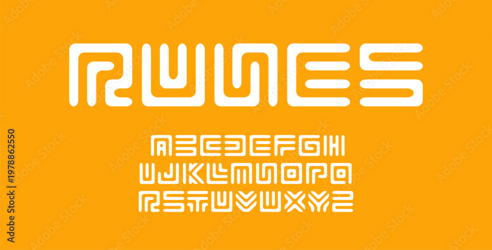 >Plakaty>Wybrane motywy - zobacz więcej !>Wieś>Runic Maze Font Logo Mexican Ancient Alphabet Vector English Letter Set Modern Typography, Creative Typographic Design for Art Title Text, Typo Poster Headline, Type Symbol Logotype. Vector Typeface