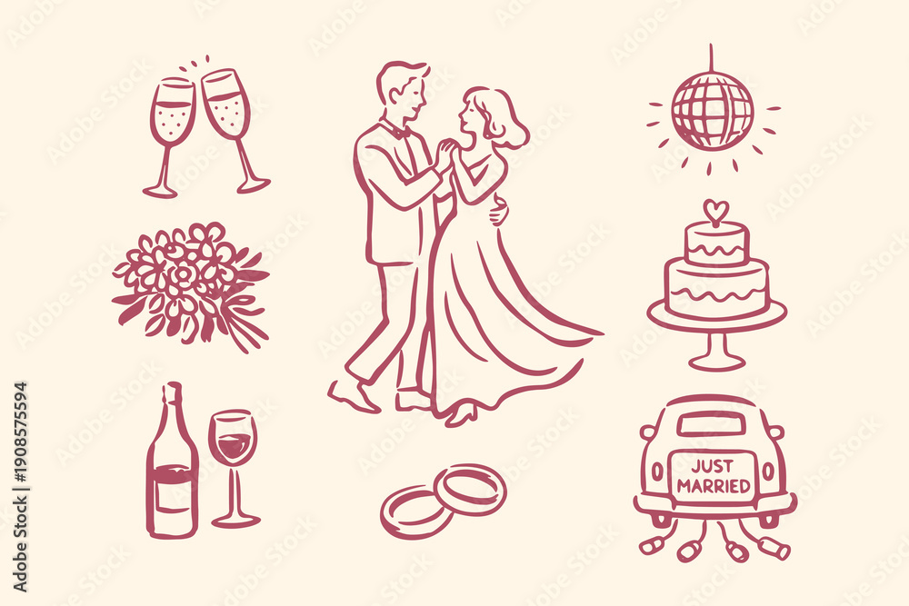 Plakat - Wedding couple dance doodle line art vector illustration.