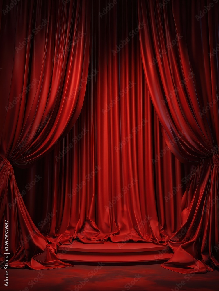 Plakat - red theater curtain stage curtain in the theater stage podium the blank for the performance is free.